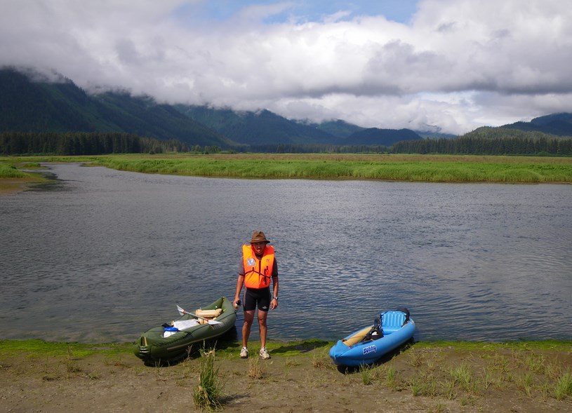 Lors d'une pause. Vigilance, bombe au poivre à la main, car un ours nous observe régulièrement en se dressant sur ses pattes arrières.
