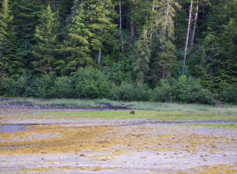 J'aperçois un ours qui sort de la forêt, tôt le matin, pendant ma garde. Je réveille Kinou. Nous n'avons pas de feu, il ne doit pas approcher.