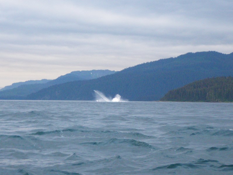 Les baleines se mettent à faire des sauts, ce n'est pas le moment pour les approcher de près d'autant plus que les lions de mer nous harcèlent et gênent nos déplacements.