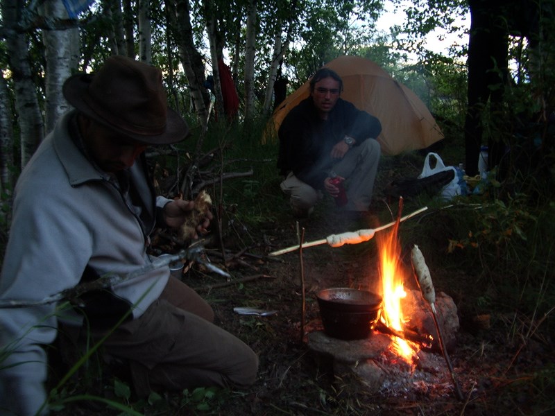 La pâte est enroulée autour d'un bâton pour être cuite.