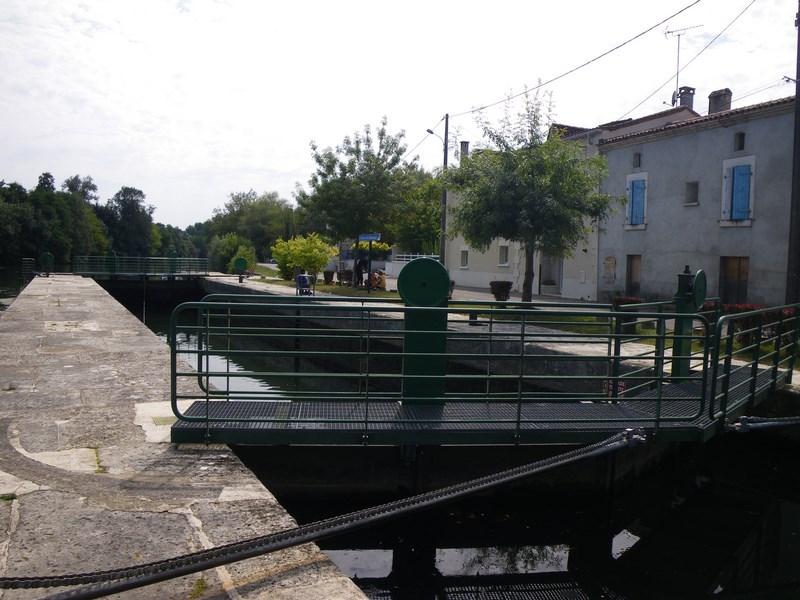 Nous décidons de passer par l'écluse pour nous initier à son fonctionnement. Cela évite un portage. Il fait très chaud. La canicule s'installe...Nous sommes à côté du village de Saint-Michel.