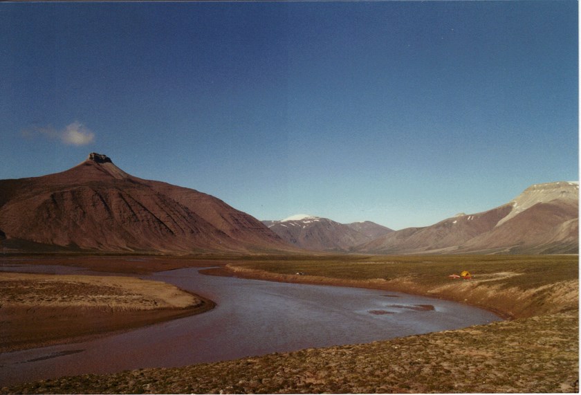 Comme on peut le voir sur cette photo, nous campons en plein jour, au soleil. Normal, nous sommes à moins de 1000 kms du pôle nord et il n'y a plus de nuit. Sous la tente au soleil, il fait même chaud, je dors sans sac, torse nu!
