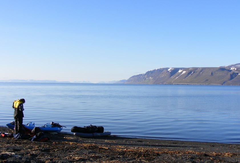 La planche gonflable est bien chargée. La mer est d'huile, il faut en profiter pour avancer au maximum.