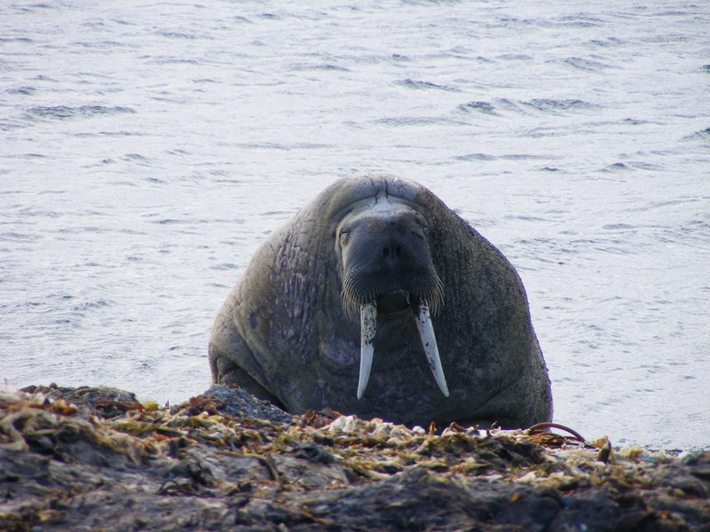 Regarde nous grand morse, nous vivons comme toi dans cette nature préservée, nous sommes heureux avec peu de choses, une tente, un feu,.....Nous nous déplaçons sans polluer à pieds ou en kayak. Nous sommes des Inuits pour trois semaines.
